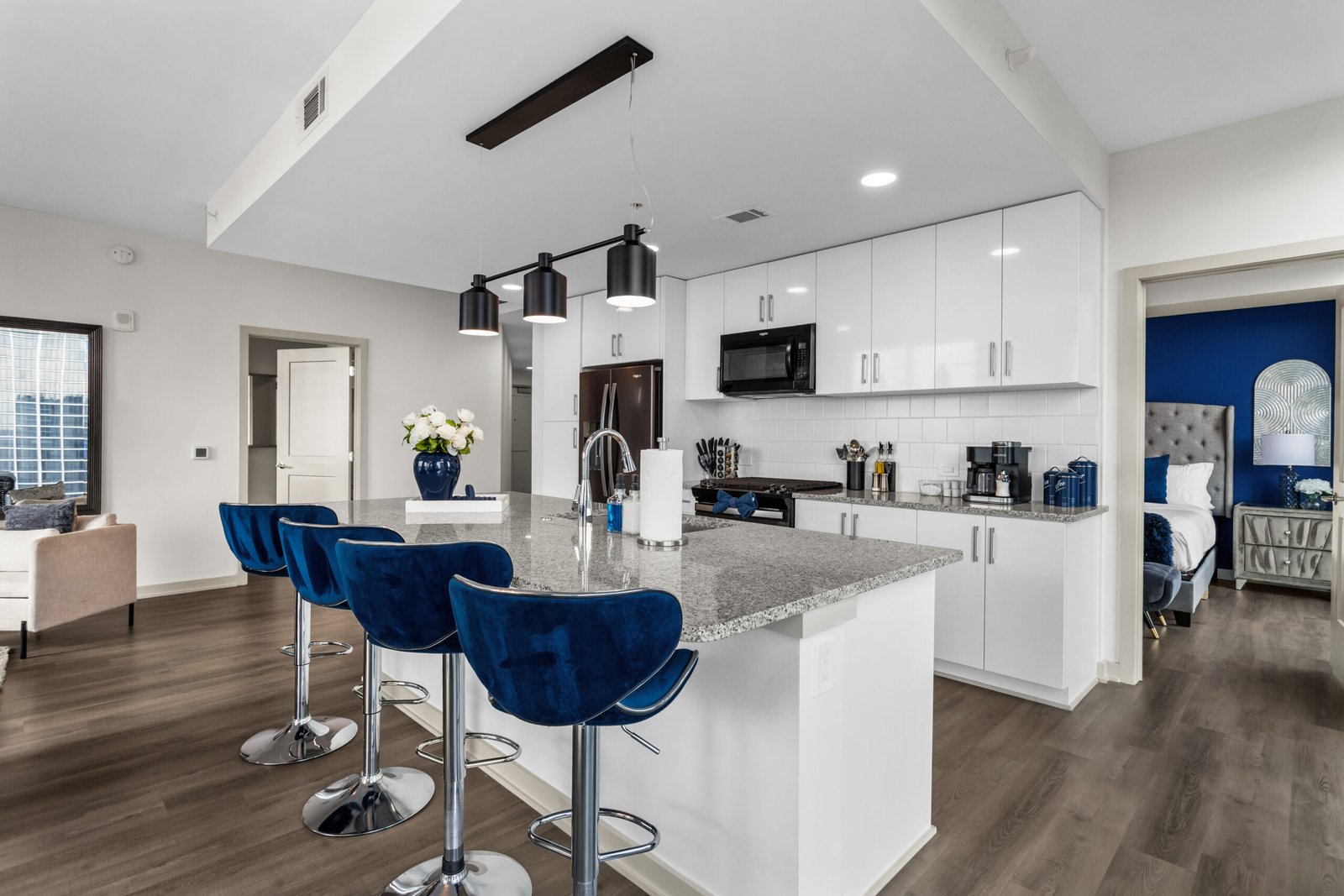 Professionally designed by Unlock Stays, this fully furnished rental blends luxury, comfort, and city convenience for extended stays or vacation rentals.